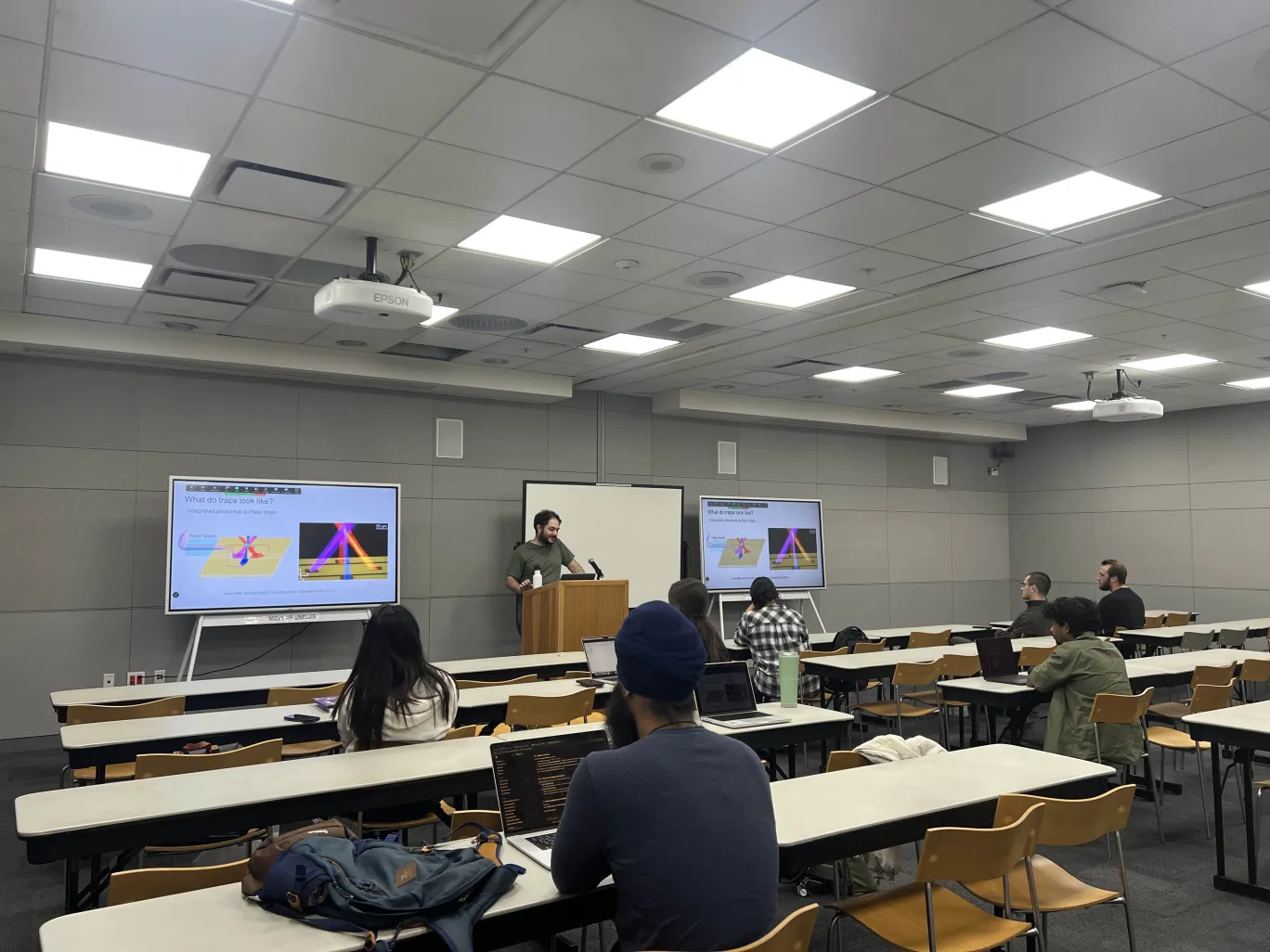 First SQE seminar of the semester — Dr. Droster discussed his work using quantum sensors for dark matter detection.